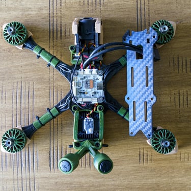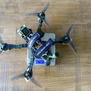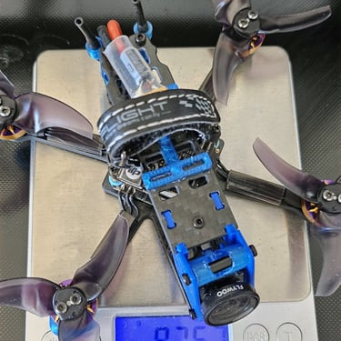 Challenge du Poids : Sorti initialement à 194g (252g avec LiPo 4S 550mAh), ce build a fait l'objet d'une chasse au poids (optimisation des TPU et choix d'une antenne radio plus légère) pour améliorer encore l'agilité.