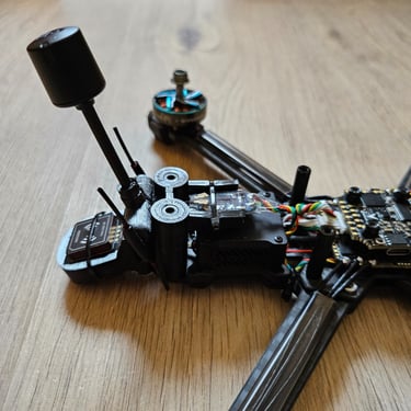 Savoir-faire spécifique : Conception de supports TPU sur mesure (supports d'antennes latéraux isolés, support GPS plat, et support O3 avec dampers anti-vibrations iFlight pour éliminer le jello).